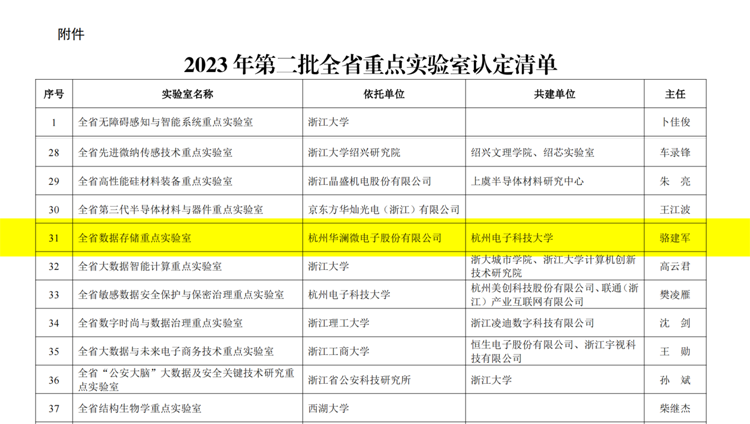華瀾微“全省數(shù)據(jù)存儲重點實驗室”獲批認(rèn)定