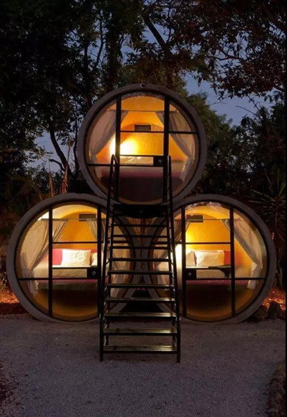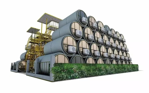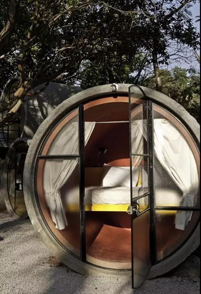 這家酒店的客房就是20根直徑2.44米,長3.5米的水泥管。