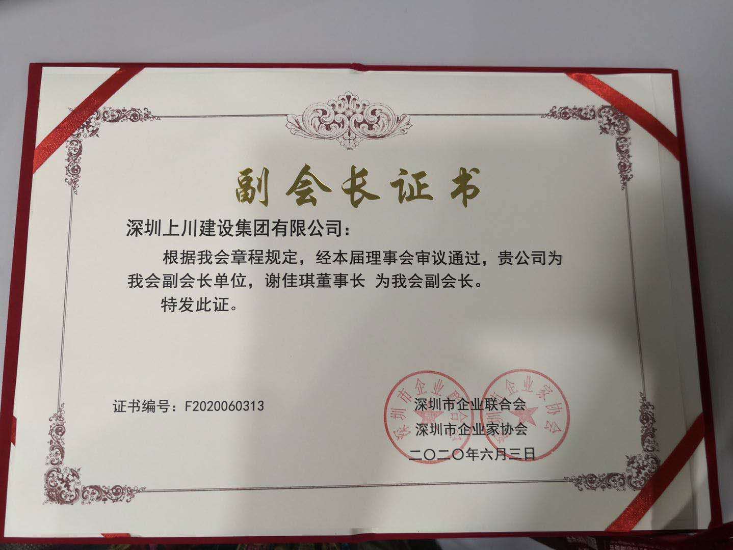 信譽的見證,上川建設(shè)集團董事長當(dāng)選為深圳市企業(yè)聯(lián)合會及企業(yè)家協(xié)會副會長!