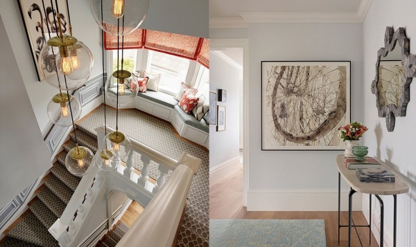 這是一美式住宅軟裝設計案例。案例中設計師于客廳、臥室以蒂芙尼藍的色彩詮釋這一對新人對居住空間幸福和浪漫的追求,鉚釘收邊的沙發椅、透明的水晶燈、古典優雅的壁爐與及各個空間充滿藝術氣息的裝飾畫搭配設計無不給人溫馨、舒適、優雅的空間體驗和享受。